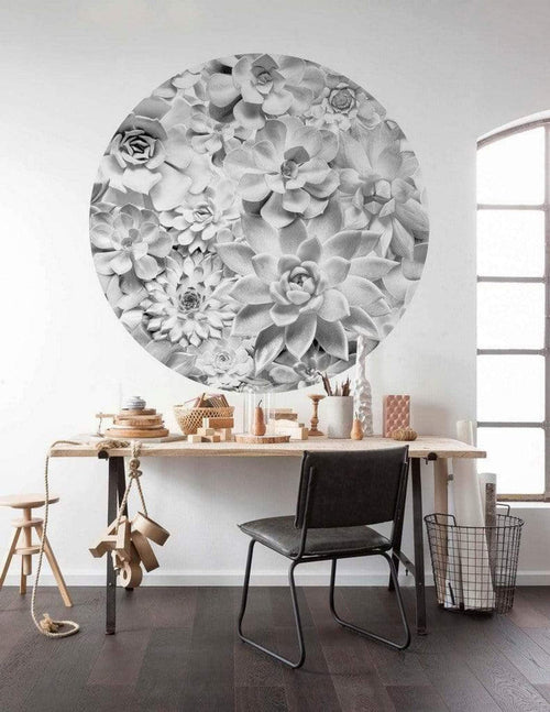 Carta da Parati - Echeveria 125x125cm - Rotonda - Tessuto non Tessuto - Autoadesiva